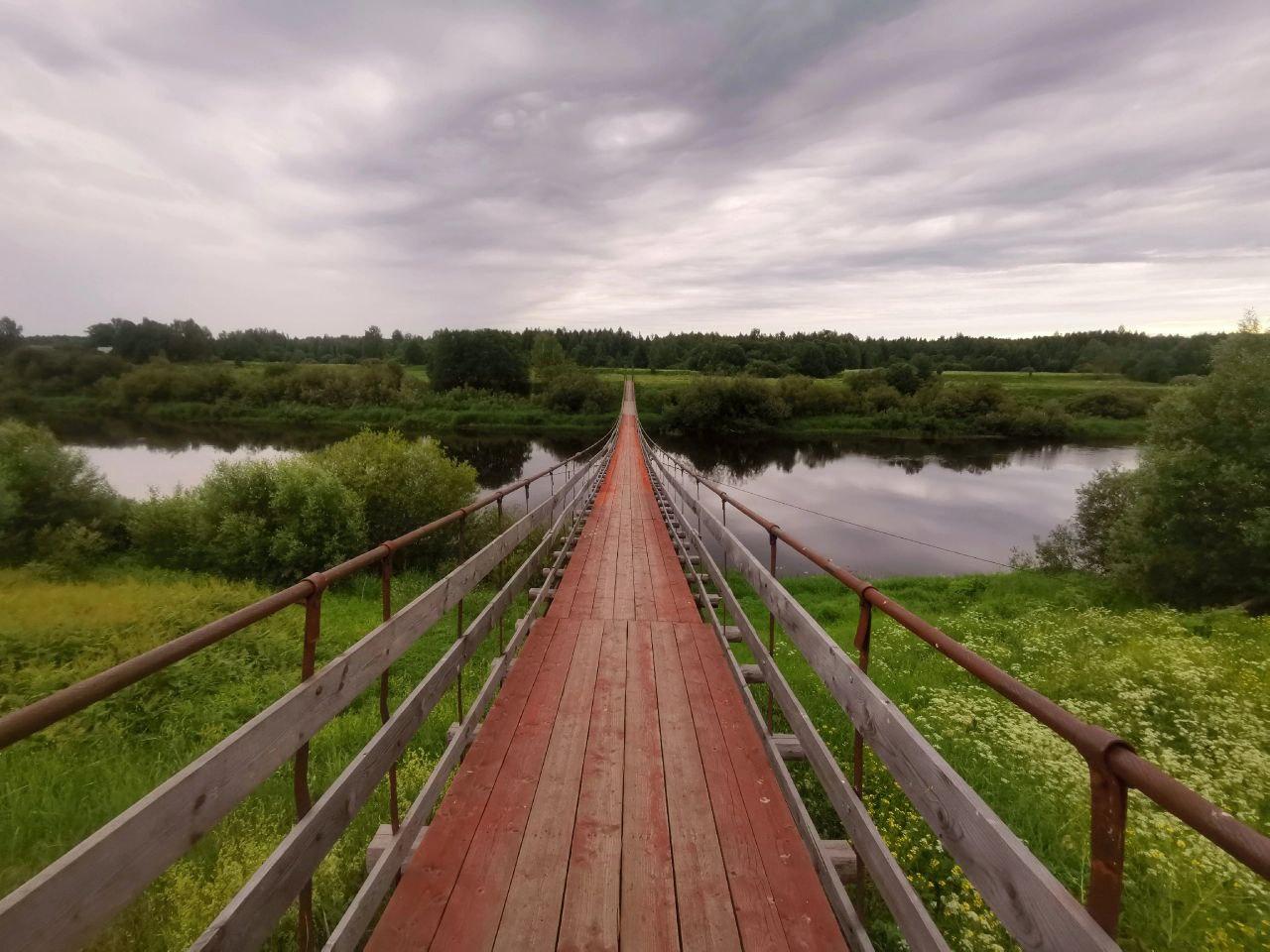 Вскоре догнала ребят – один из них проколол колесо и двое остальных ехали не спеша, ожидая товарища. Добрались до очередного КП вместе, проехав чудный грунтово-песочный участок с вечно голодными комарами, сфотографировались у подвесного моста и я, наконец, привела план в действие, оставшись одна.